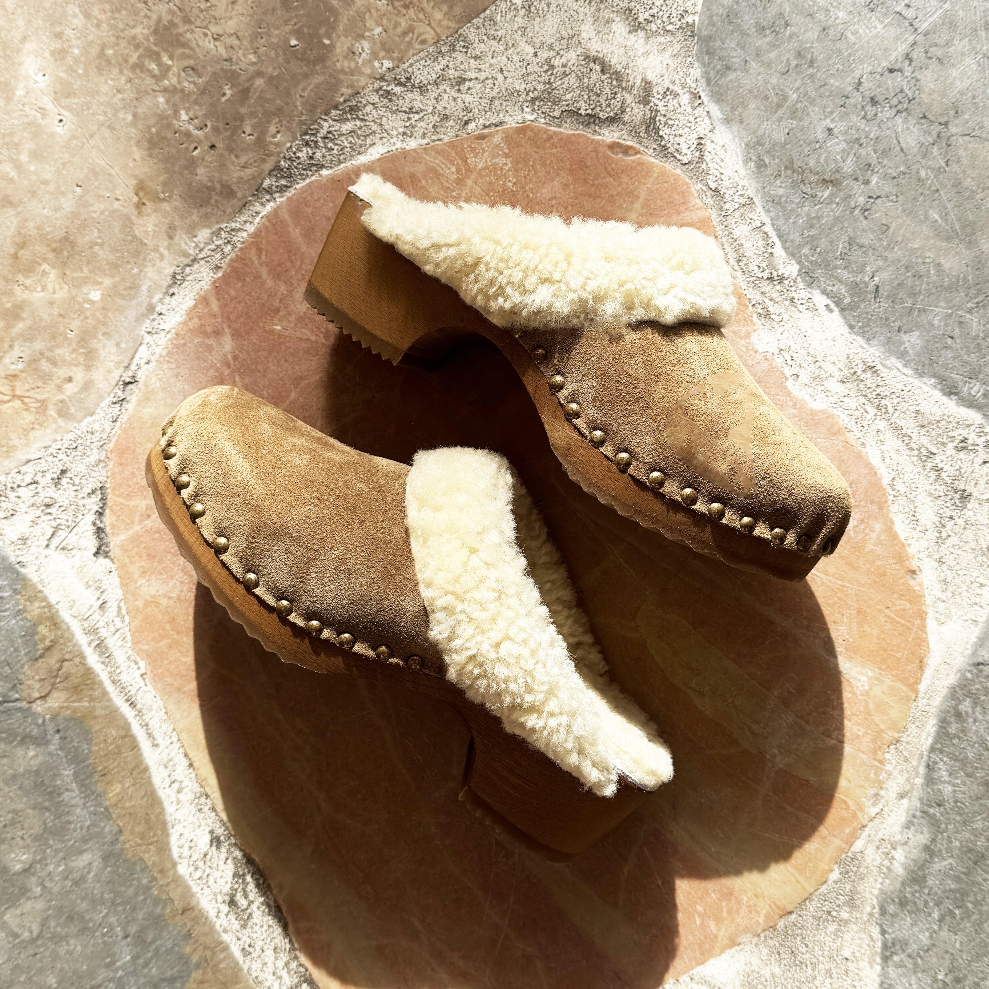Clogs that feel like a small shelter — lined in shearling, grounded on sculpted