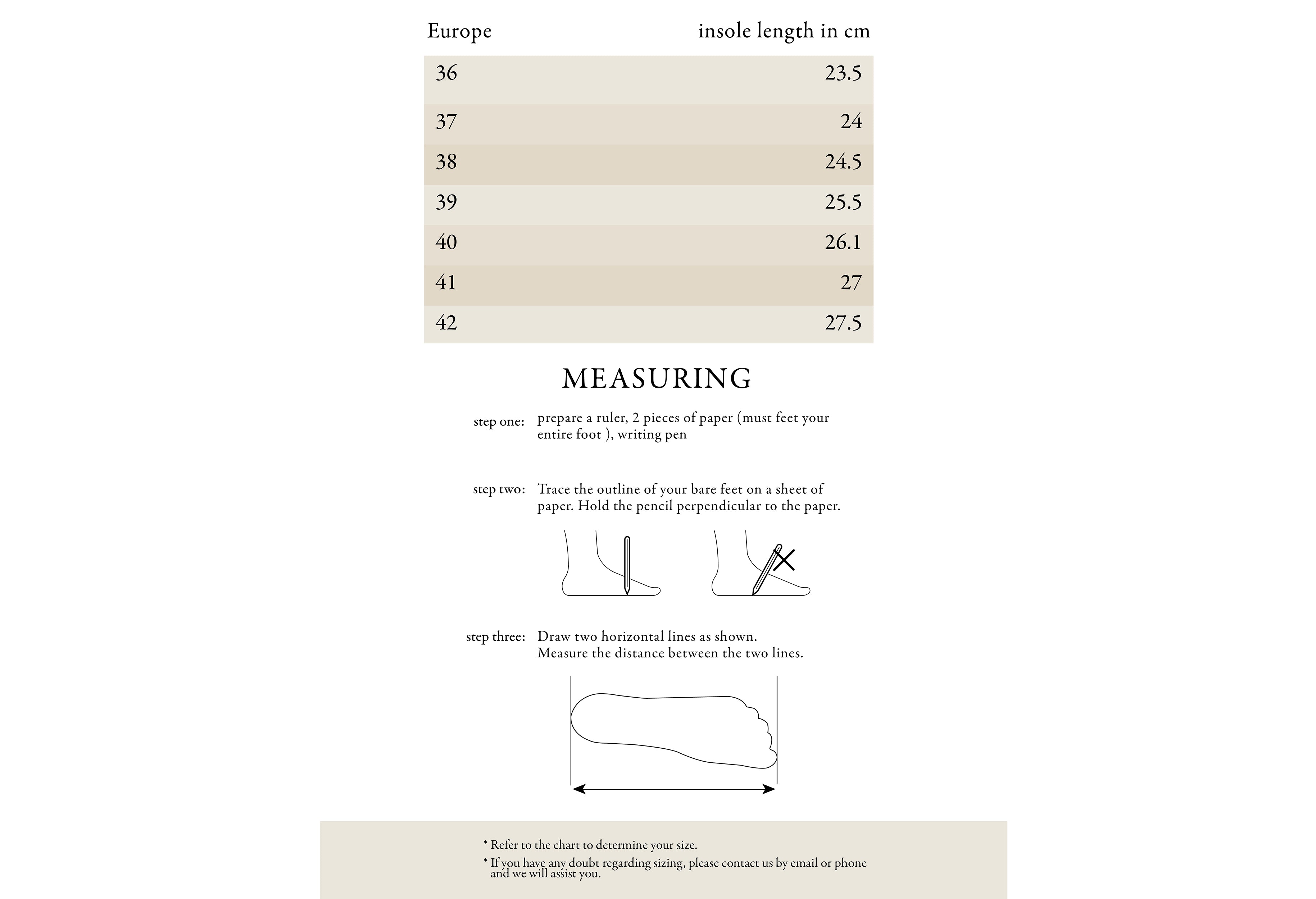 We encourage our clients to measure the insole of a pair of sandals in order to use our guide.