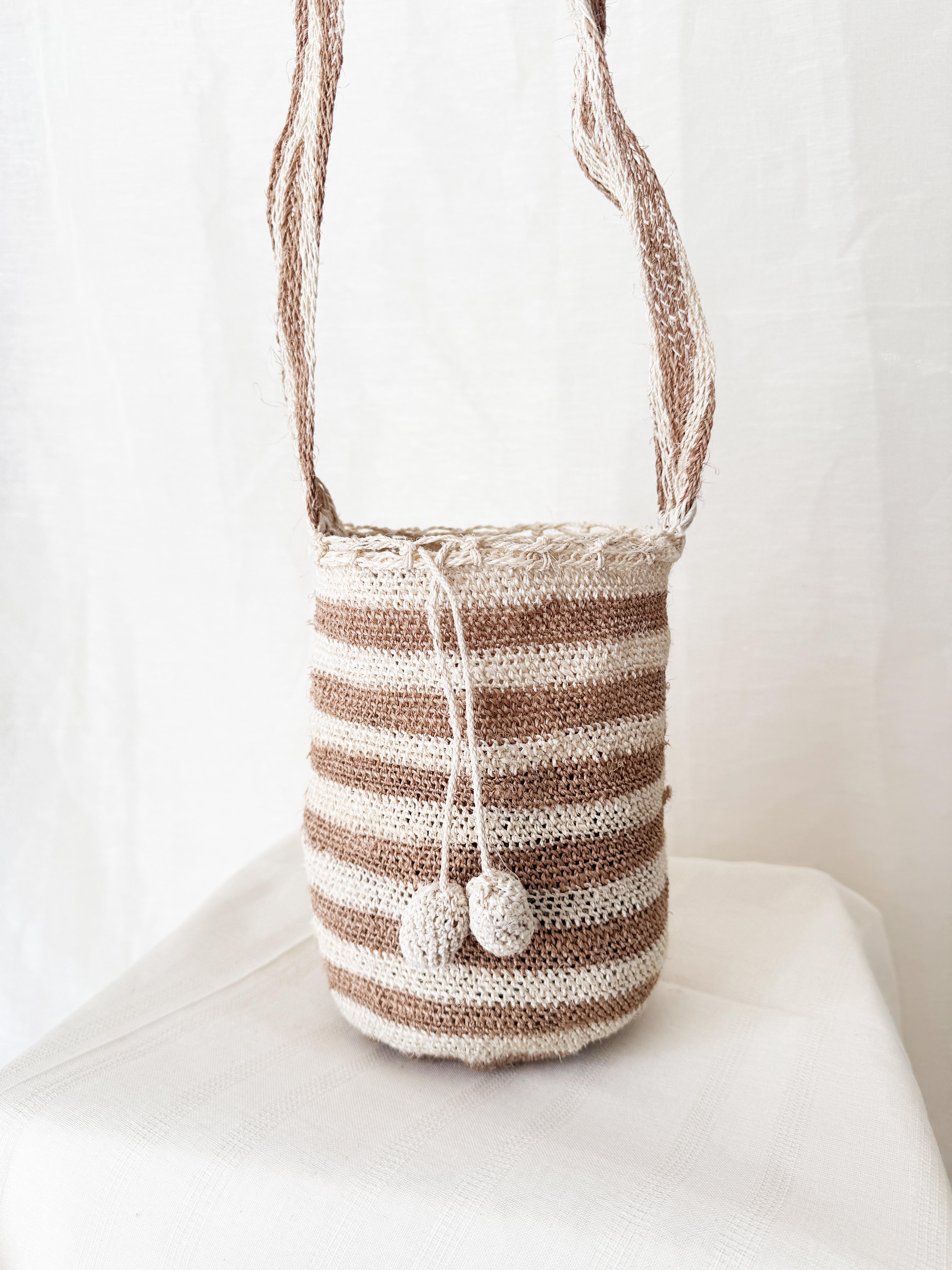 THE MINI HIPPIE RAFIA BAG NATURAL STRIPS