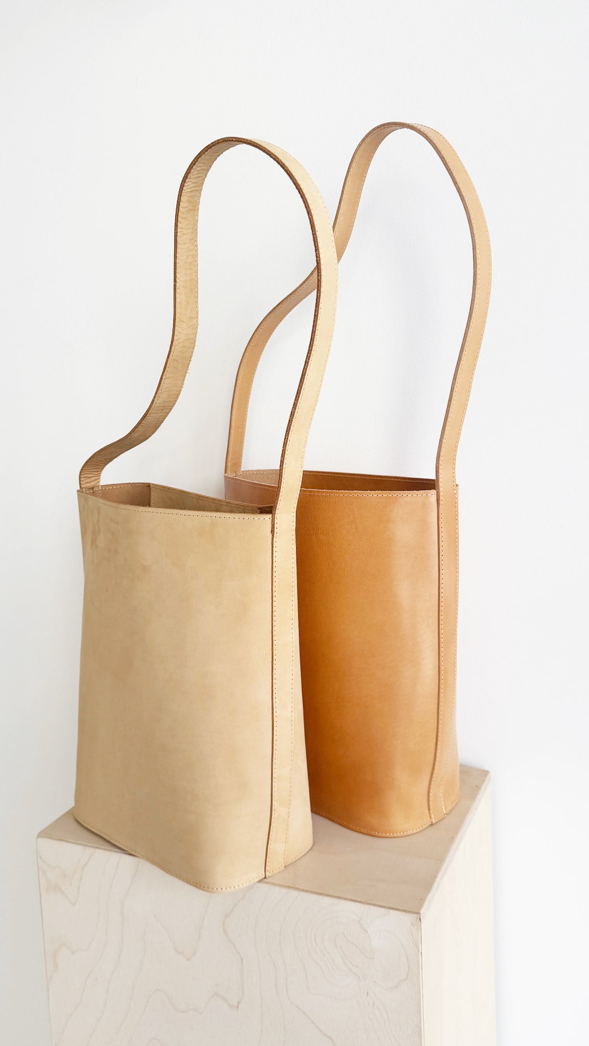 We've been designing our new collection of vegetable tanned leather basket to carry all year long over your shoulder. They are modern classics, aging beautifully with time, oversized and practical as an everyday bag.